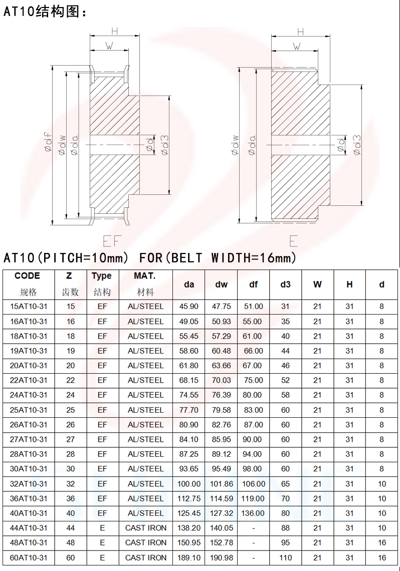 AT10 keyway synchronous wheel